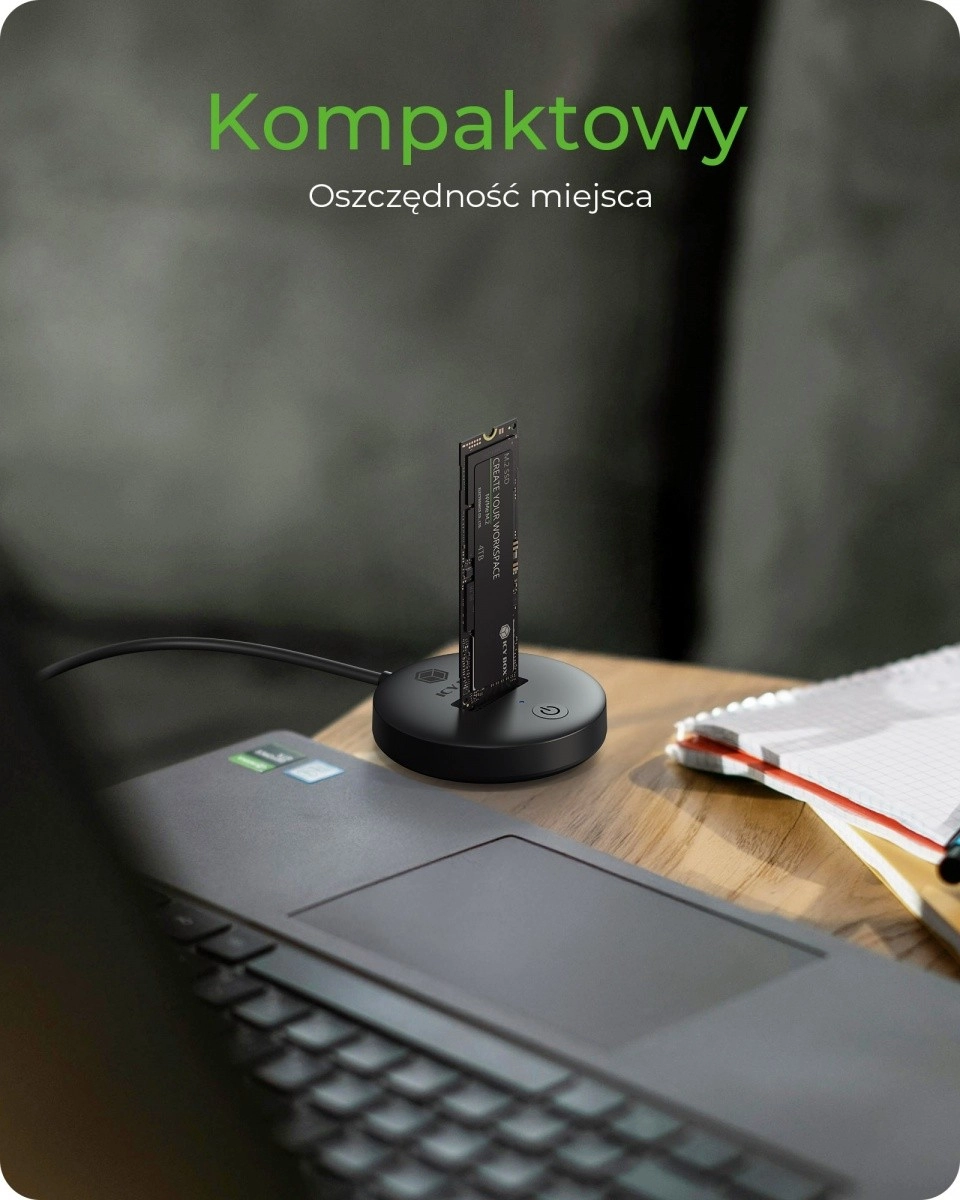 Kompaktowa konstrukcja: Lekka i elegancka obudowa z wbudowanym kablem USB Type-C, idealna w podróży lub do ograniczenia bałaganu w miejscu pracy.