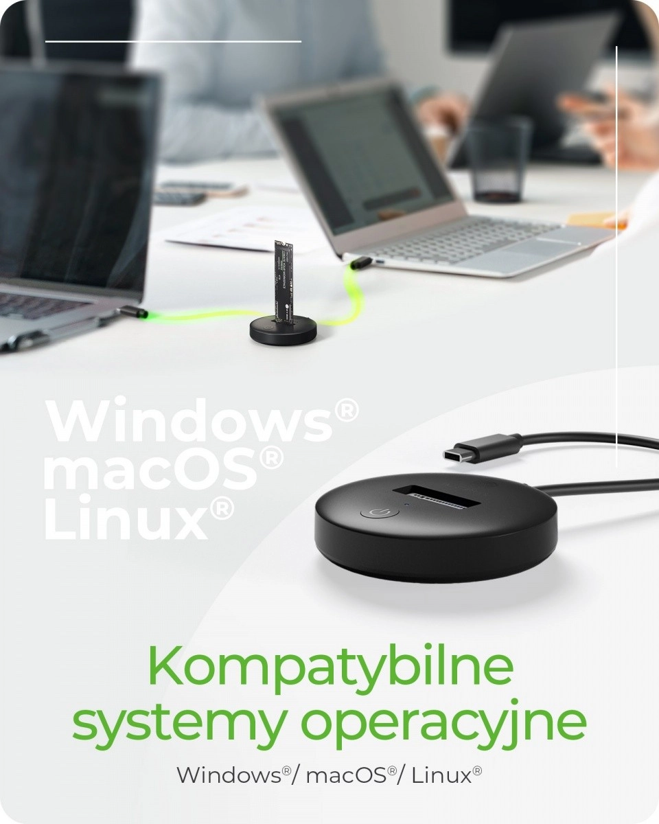 Szeroka kompatybilność: Obsługuje systemy Windows, macOS i Linux bez konieczności instalowania dodatkowych sterowników.