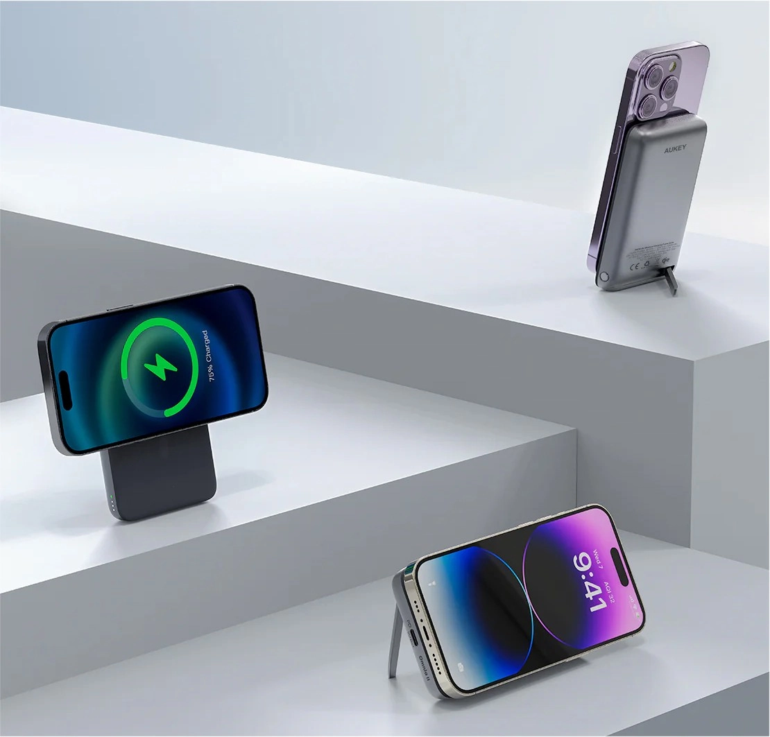 Dzięki przenośnej i kompaktowej powerbanku AUKEY MagFusion o pojemności 10000mAh już nigdy nie musisz obawiać się rozładowania telefonu. Technologia MagSafe zapewnia silne magnetyczne połączenie z iPhone’ami od modelu 12 wzwyż, co umożliwia bezprzewodowe ładowanie i nieprzerwane użytkowanie przez cały dzień.