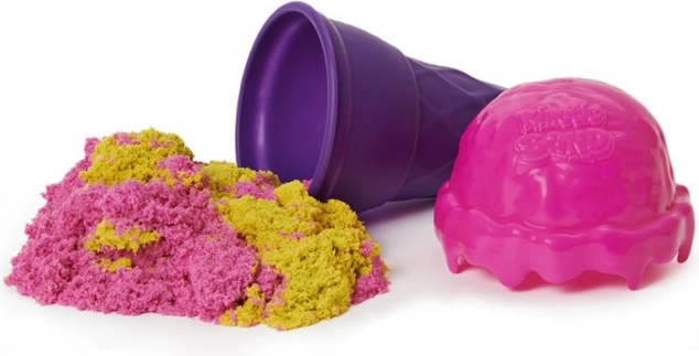 Kinetyczny piasek oferuje magiczną płynną strukturę, która jest wyjątkowo dobrze formowalna i skleja się ze sobą, co znacznie ułatwia kształtowanie. Ten zestaw do zabawy zmienia klasyczną grę w produkcję i sprzedaż lodów w nowy wymiar dzięki pachnącej piaskowej zawartości. Każde opakowanie zawiera dwa kolory piasku, które nie tylko stymulują wyobraźnię, ale również pachną zgodnie z kolorem.