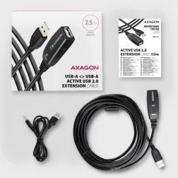 Aktywny kabel Axagon USB 2.0 o długości 7,5 metra jest idealny do podłączenia komputera do różnych urządzeń USB. Wzmacnia sygnał i umożliwia połączenie na większą odległość niż zwykłe kable.
