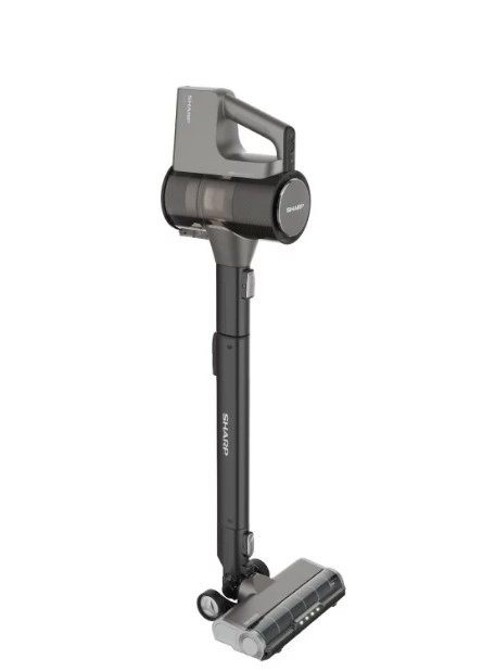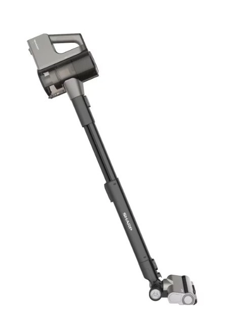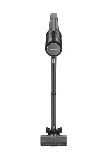 Odkurzacz Sharp 2w1 to innowacyjne urządzenie łączące funkcje czyszczenia pionowego i ręcznego. Wyposażony w bezszczotkowy silnik inwerterowy 300 W oraz baterię Li-ion 2000 mAh, oferuje do 65 minut pracy. Teleskopowa rączka z siedmiostopniową regulacją długości (od 890 do 1100 mm) zapewnia wygodne dopasowanie do użytkownika, a pozycja pionowa ułatwia przechowywanie.