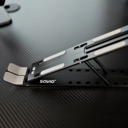 Lekka i kompaktowa konstrukcja: Wykonany z wytrzymałego aluminium i antypoślizgowej gumy, stojak waży zaledwie 245 g i z łatwością mieści się w każdej torbie, co jest idealnym rozwiązaniem dla użytkowników ceniących mobilność bez kompromisów w kwestii wygody.