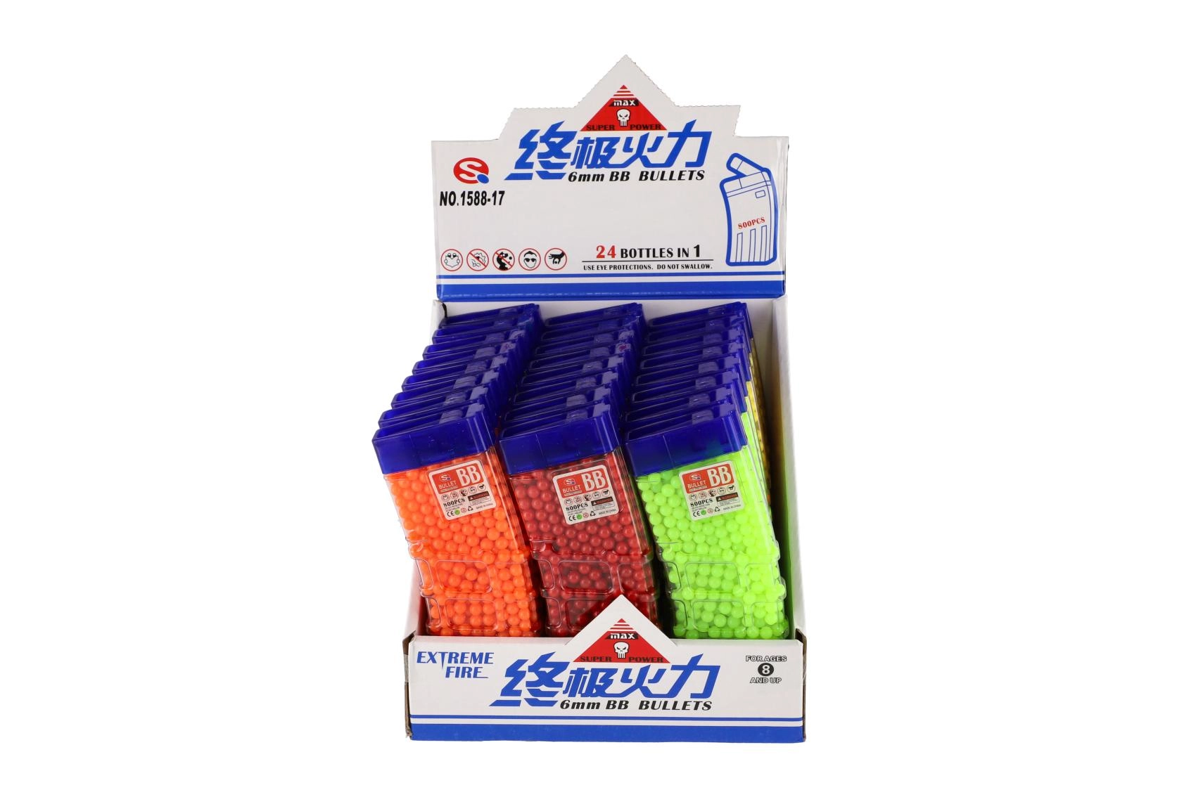 Ten uniwersalny zestaw kulek 6 mm dostarcza odpowiednią ilość amunicji do długiej zabawy. Wariant kolorystyczny (żółty, niebieski, zielony, czerwony, pomarańczowy itp.) zwiększa przejrzystość i frajdę podczas gry. Przezroczysty plastikowy pojemnik z praktycznym dzióbkiem ułatwia napełnianie dziecięcych zabawek, a jednocześnie chroni zawartość przed wysypaniem.