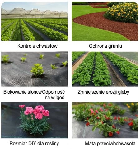 Ta agrotkanina jest idealna do walki z chwastami bez chemikaliów. Zabezpiecza utrzymanie wilgoci w glebie i wspiera wzrost roślin. Agrotkanina jest odpowiednia do szklarniowej uprawy kwiatów, warzyw i owoców, chroni rośliny przed szkodnikami oraz korzenie przed mrozem i niekorzystnymi warunkami klimatycznymi.