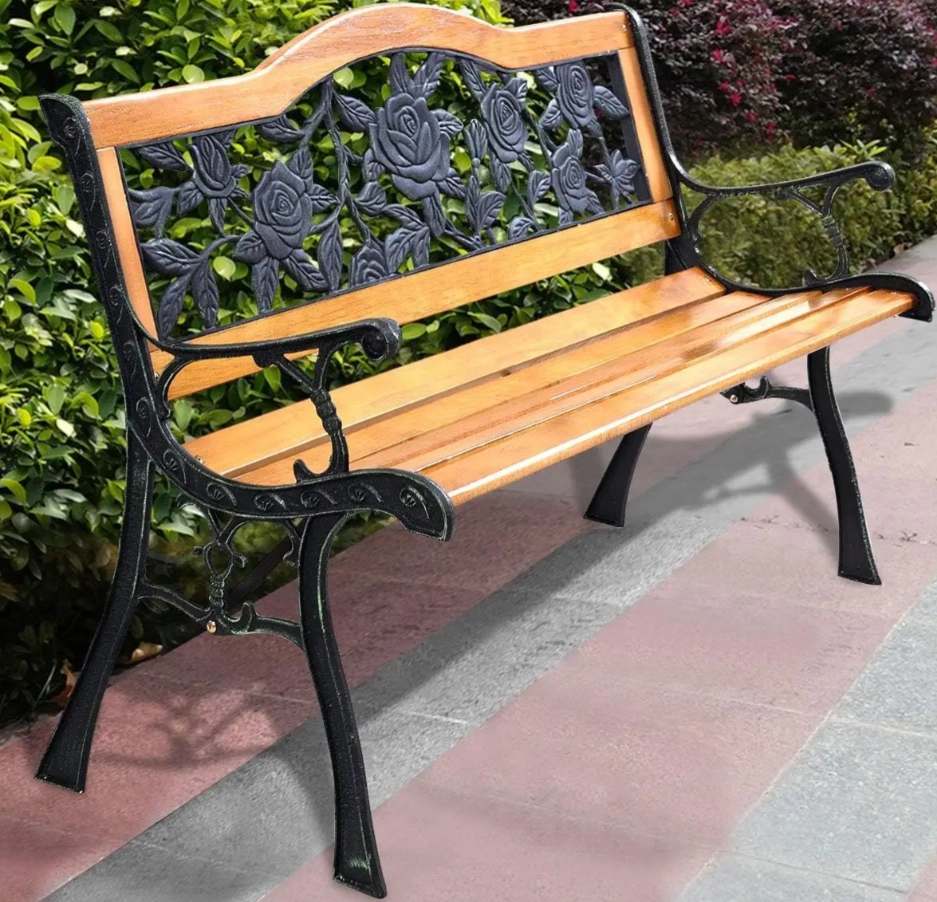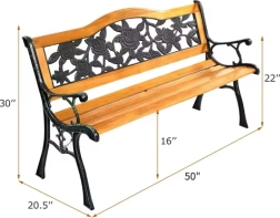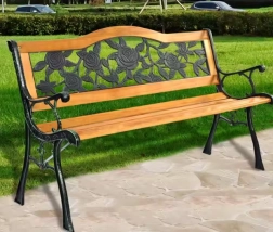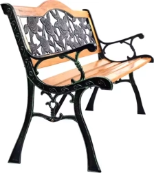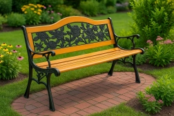 Ogrodowa ławka zachwyca wyjątkowym designem, który harmonijnie łączy ciepło drewna z metalowymi zdobieniami z subtelnymi zielonymi akcentami. Komfortowe i ergonomicznie wyprofilowane drewniane siedzisko gwarantuje wygodny relaks po wymagającym dniu.
