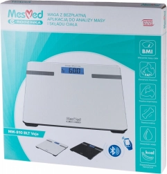Elektroniczna waga MesMed MM-810 zapewnia precyzyjny pomiar masy ciała z możliwością przesyłania danych przez Bluetooth do aplikacji MesMed e-rodinka. Monitoruj i analizuj swoje wyniki, aby mieć zdrowie pod kontrolą.