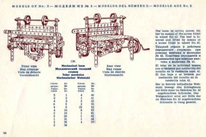 W zestawie znajduje się duża, stylizowana na epokę książka z instrukcjami licząca 94 strony z obrazkowymi krokami. Instrukcje uzupełniono oryginalnymi tekstami w języku angielskim, niemieckim, hiszpańskim i rosyjskim oraz przygotowano je dla zestawów MERKUR classic C03, C04 i C05.