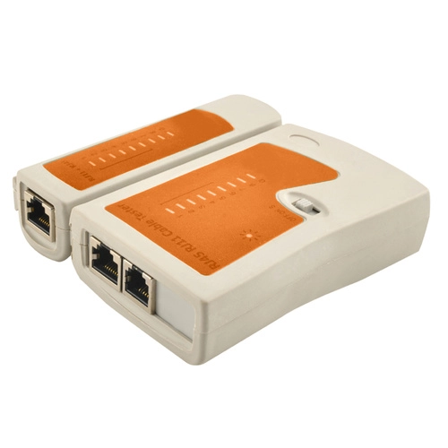 Tester jest kompatybilny z różnymi typami kabli, w tym RJ45 i RJ11, co umożliwia testowanie kabli ethernetowych i telefonicznych.