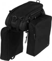 Wykonane z wodoodpornego poliestru, te sakwy są odporne na deszcz i wilgoć, chroniąc Twoje rzeczy w każdą pogodę. Zestaw składa się z jednej centralnej sakwy i dwóch bocznych kieszeni, które można łatwo odpiąć i nosić jako torbę na ramię.