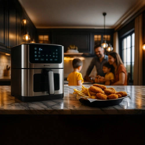 Frytkownica Ruhhy oferuje bezpieczne smażenie bez tłuszczu, co pozwala przygotować ulubione potrawy w zdrowszej wersji bez utraty smaku. Jej powłoka nieprzywierająca ułatwia czyszczenie, a nowoczesny design doskonale komponuje się z Twoją kuchnią.
