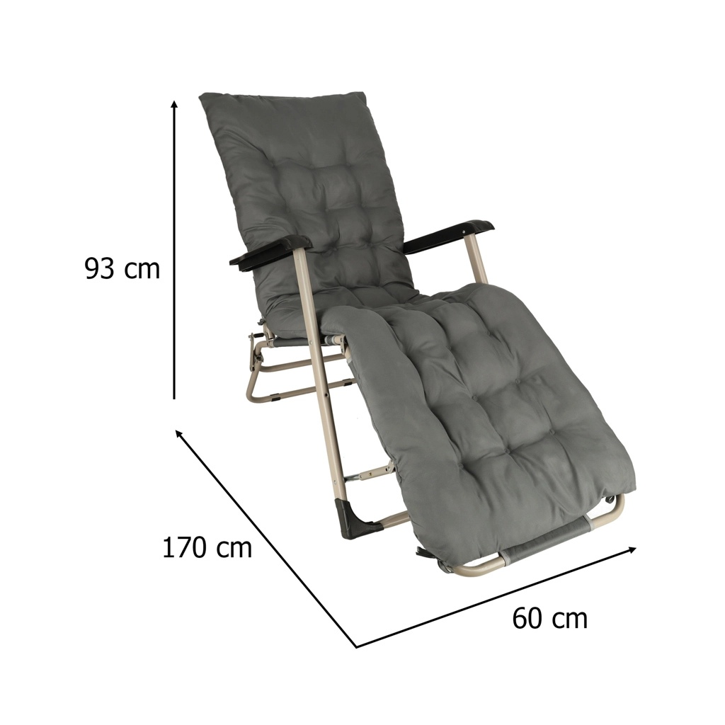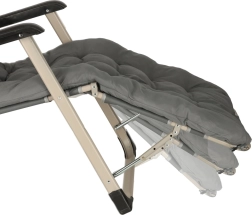 Leżak wykonany jest z wytrzymałej metalowej ramy z poszyciem ze 100% poliestru Oxford. Łatwo się składa, a dzięki możliwości dwóch pozycji odchylenia jest idealny do relaksu i opalania.