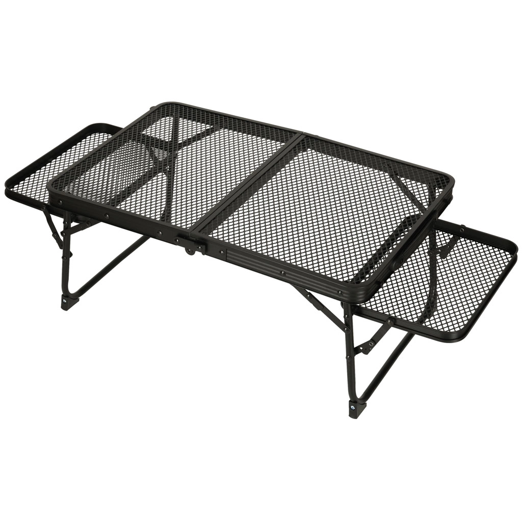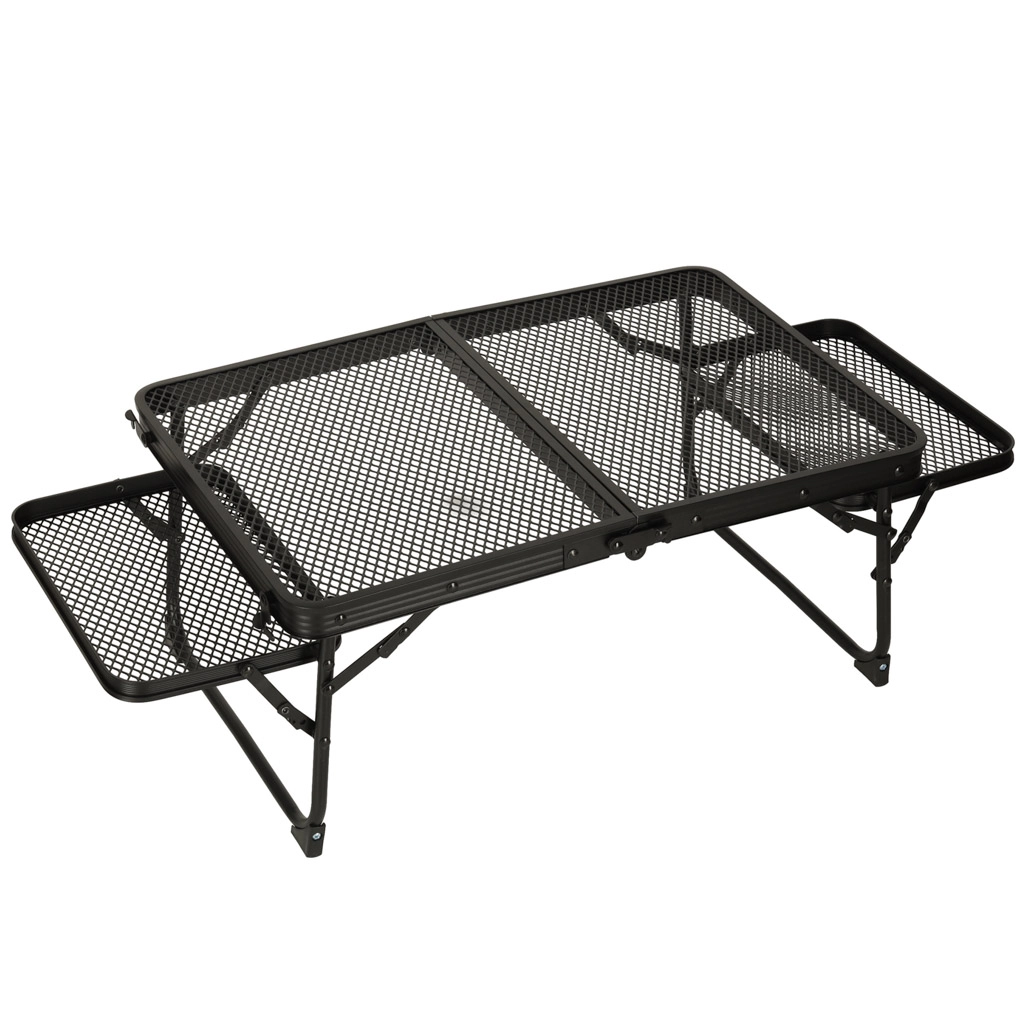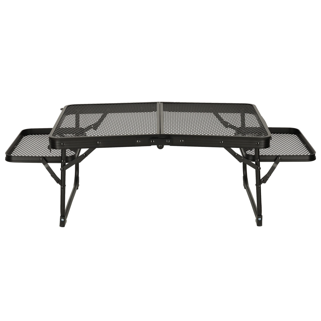 Ten składany stół campingowy jest idealny dla tych, którzy szukają wielofunkcyjnego i praktycznego rozwiązania do zewnętrznych aktywności. Wykonany z aluminiowej konstrukcji, stół jest odporny na rdzę, a jego metalowa ażurowa płyta zapewnia doskonałą wentylację i trwałość. Dzięki swojej lekkiej wadze może być łatwo przenoszony i przechowywany, co jest doskonałe do używania na campingu, pikniku lub w ogrodzie.