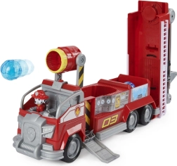 Wyrusz na misję ratunkową do Miasteczka Przygód z wozem strażackim Marshalla! Ten dopracowany model zapewnia dzieciom dynamiczną zabawę: po otwarciu dachu pojazd transformuje się, drabina wysuwa się na dużą wysokość i obraca o 360°, dzięki czemu bez trudu dotrzesz do „najwyższych budynków” w pokoju.