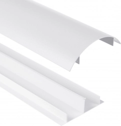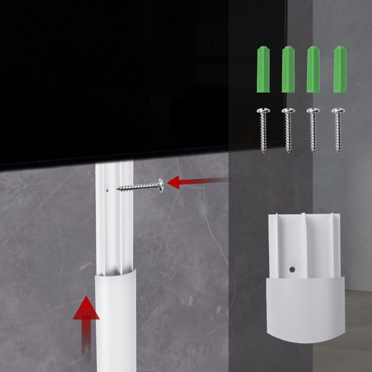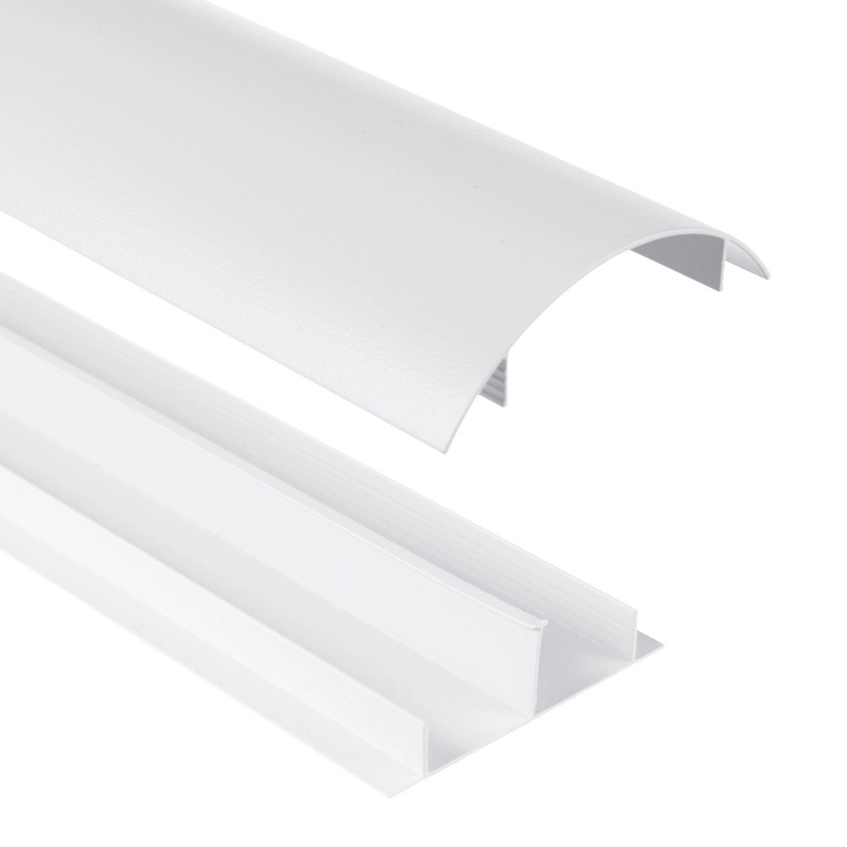 Listwa jest dwuczęściowa – składa się z podstawy montażowej i pokrywy, co umożliwia szybki i łatwy dostęp do kabli w celu ich wymiany lub konserwacji. Opcje montażu obejmują taśmę samoprzylepną do szybkiego i bezproblemowego mocowania na gładkich powierzchniach lub zastosowanie śrub i kołków rozporowych dla większej stabilności.