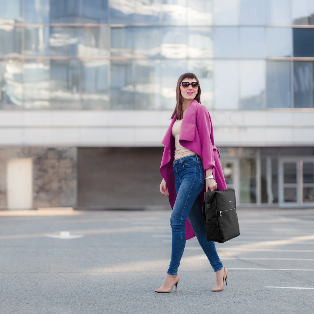 Ten plecak łączy nowoczesny minimalistyczny design z licznymi funkcjami, w tym główną kieszenią na zamek oraz innymi mniejszymi kieszeniami.