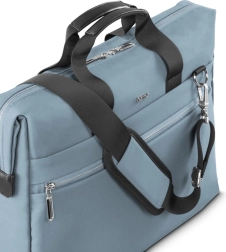 Zintegrowany pas do mocowania na walizce na kółkach jest idealny w podróży, gdy liczy się mobilność i porządek. Mimo że torba jest zaprojektowana dla kompaktowych laptopów, oferuje wystarczająco dużo miejsca na dodatkowe akcesoria, takie jak ładowarka, dokumenty, telefon czy notes.