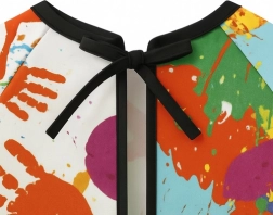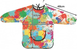 Dzięki wiązaniu z tyłu i elastycznym mankietom fartuch łatwo dopasowuje się i nie ogranicza ruchów dziecka.