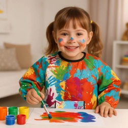 Zaprojaktowany tak, aby dopasowywał się do różnych sylwetek dzieci. Tylne wiązanie i elastyczne mankiety ułatwiają zakładanie i nie ograniczają ruchów podczas zabawy. Mali artyści polubią fartuch dzięki żywym kolorom, które zachęcają do noszenia.