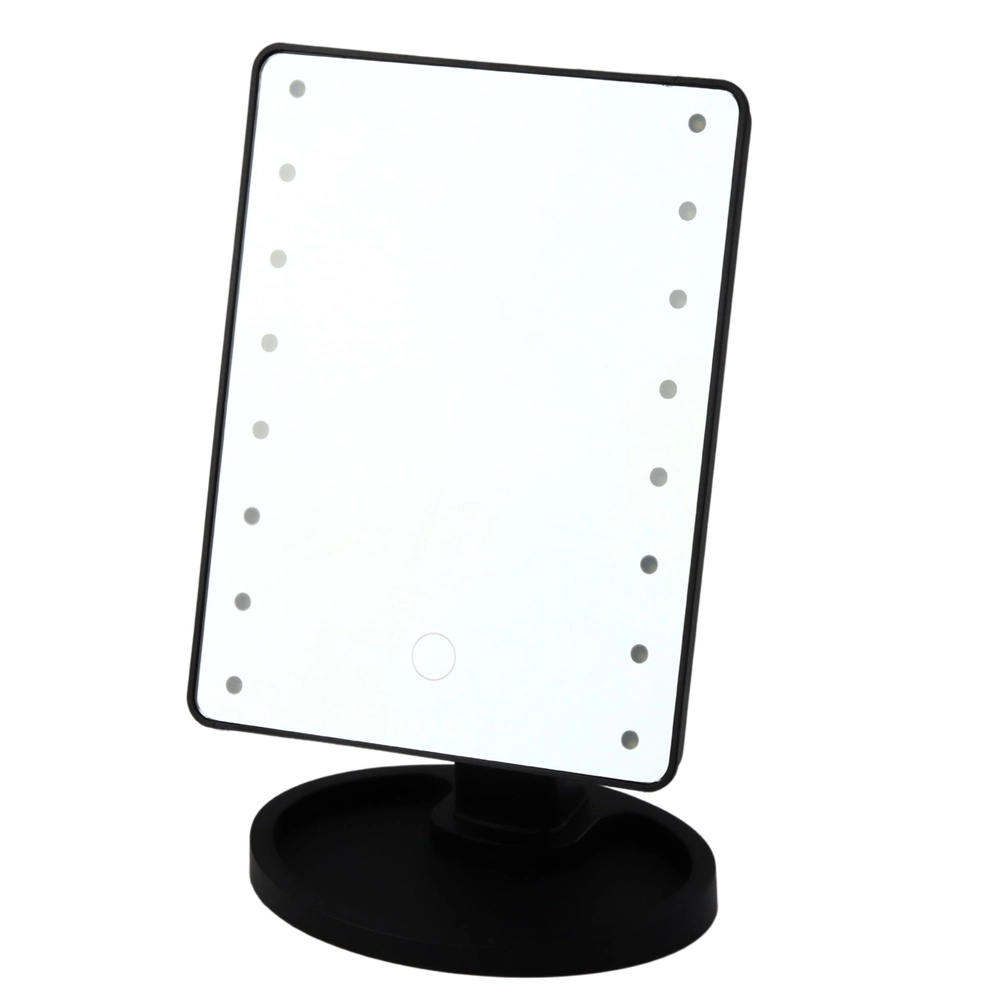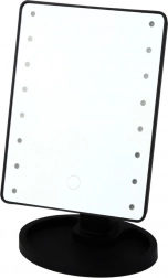 Lusterko może być zasilane czterema bateriami AA (brak w zestawie), co czyni je wyjątkowo praktycznym pomocnikiem na co dzień, także w podróży lub w miejscach bez dostępu do gniazdka. Szeroka, stabilna podstawka jest wyposażona w praktyczny organizer, idealny na drobne kosmetyki, biżuterię lub szczotki. Nowoczesny design, czarne wykończenie i intuicyjna obsługa łączą estetykę z funkcjonalnością.