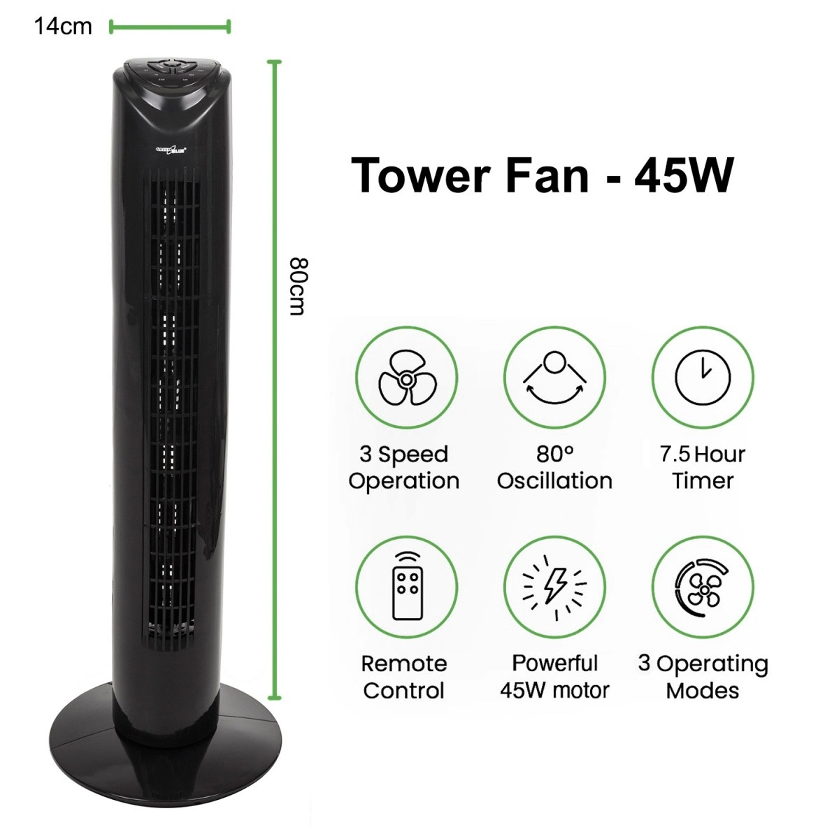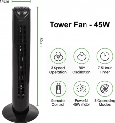 Nowoczesna i stabilna konstrukcja o wysokości 82 cm umożliwia umieszczenie wentylatora zarówno w domu, jak i w biurze, bez zajmowania dużo miejsca. Szeroka podstawa zapewnia stabilność urządzenia.
