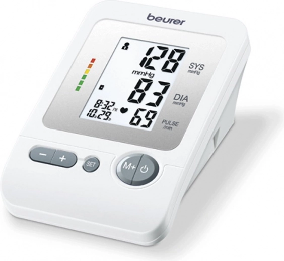 Automatyczny ciśnieniomierz BM 26 zapewnia dokładny pomiar ciśnienia krwi i tętna na ramieniu. Dzięki kolorowej skali ryzyka oraz funkcji wykrywania arytmii jest idealny do użytku domowego dla maksymalnie czterech użytkowników.