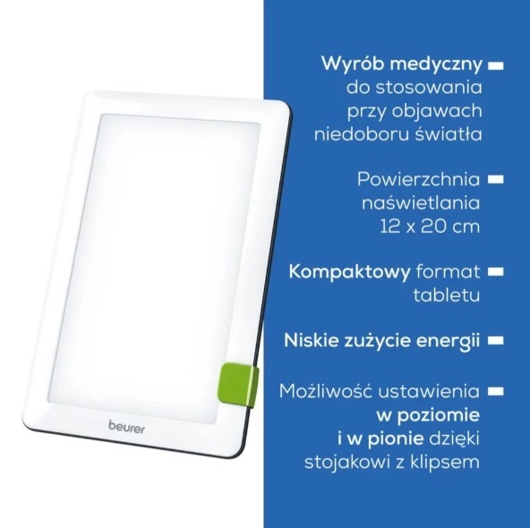 Szczególnie w miesiącach zimowych wiele osób odczuwa brak równowagi lub energii z powodu niedostatku światła dziennego. Lampa do terapii światłem Beurer TL 30 skutecznie przeciwdziała tym objawom i poprawia samopoczucie w szare dni, symulując światło dzienne.