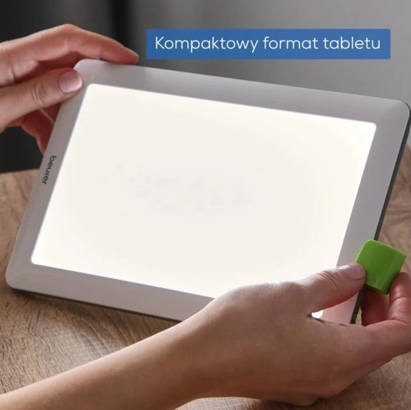 Praktyczny, kompaktowy design w rozmiarze tabletu (15,6 x 23,6 cm) czyni tę lampę idealnym towarzyszem na co dzień – w domu, biurze lub w podróży. Po podłączeniu zapewnia dodatkową dawkę światła dziennego zawsze, gdy tego potrzebujesz.