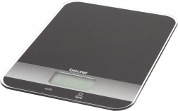 Kuchenna waga Beurer w eleganckim czarnym kolorze jest wyposażona w praktyczną funkcję ważenia z tarą oraz czytelny wyświetlacz LCD. Szklana powierzchnia zapewnia nowoczesny wygląd i łatwe czyszczenie.