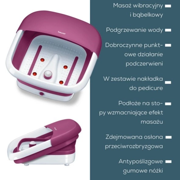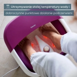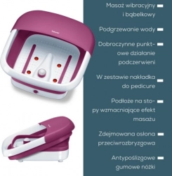 Relaksacyjna wanienka do wodnego masażu stóp od Beurer łączy funkcje pedicure, masażu wibracyjnego i utrzymania temperatury wody, co zapewnia ulgę i regenerację zmęczonym stopom.