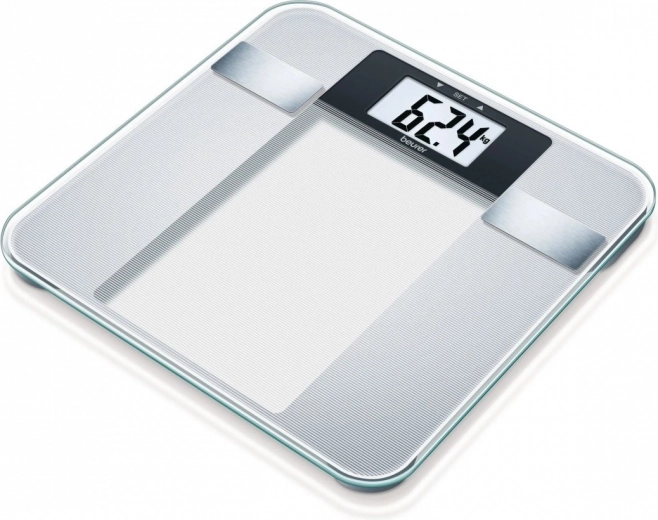 Diagnostyczna waga Beurer zapewnia precyzyjny pomiar masy ciała, zawartości tłuszczu i wody w organizmie, masy mięśniowej, a także oblicza BMI. Posiada duży wyświetlacz LCD i udźwig do 150 kg.