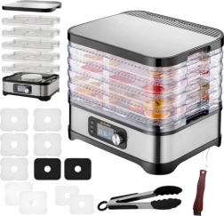 Uniwersalna suszarka RUHHY o mocy 400 W jest idealna do suszenia grzybów, owoców, warzyw i ziół. Z 5 tacami o pojemności 10 litrów, regulowaną temperaturą (35–70°C) i wyświetlaczem LCD z programatorem na 72 godziny zapewnia efektywne i energooszczędne suszenie.