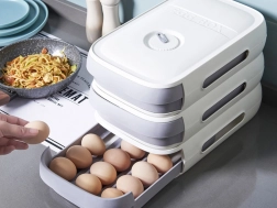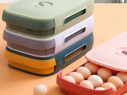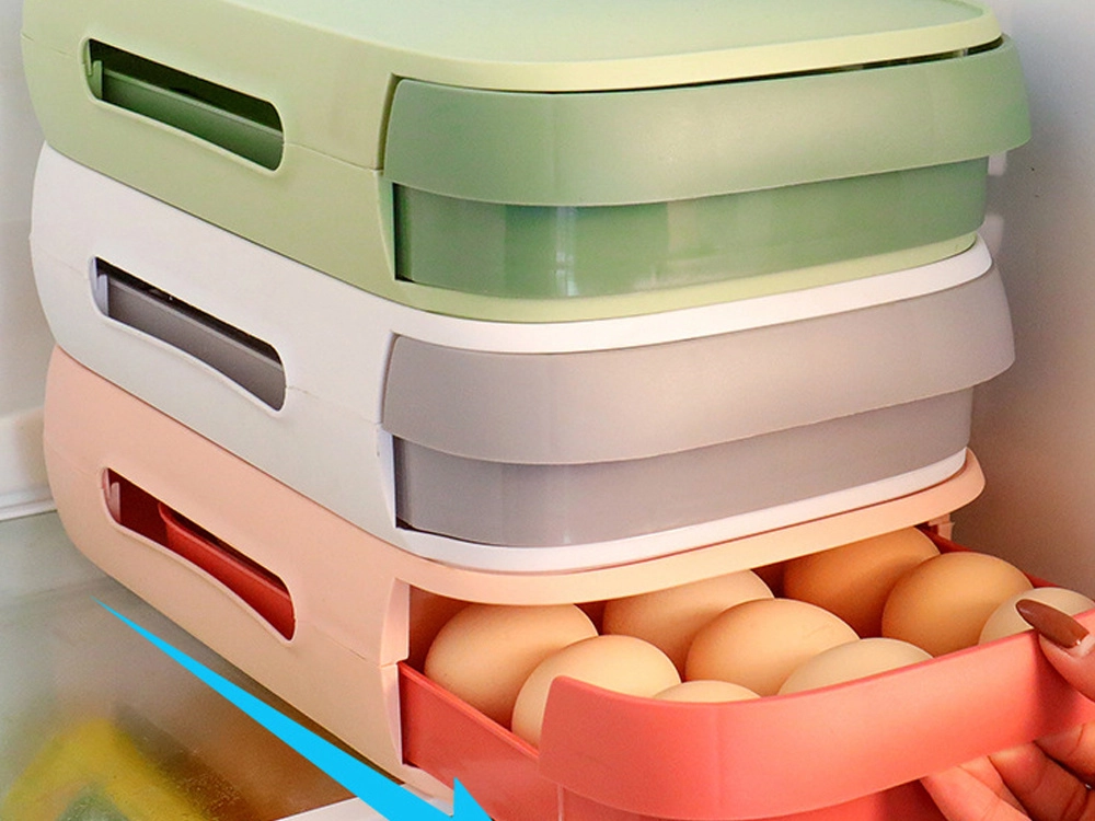 Elegancja i funkcjonalność łączą się w tym kompaktowym i modułowym organizerze na jajka. Dzięki gładko wysuwanej szufladzie dostęp do jajek jest szybki i wygodny. Płaska, sztaplowalna pokrywka pozwala oszczędzać miejsce, a praktyczne boczne okienko ułatwia kontrolę liczby jajek.