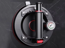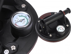 Przyssawka została zaprojektowana do pracy poziomej i pionowej na gładkich powierzchniach. Wyposażono ją w manometr z podziałką kolorystyczną, który zapewnia pełną kontrolę nad bezpieczeństwem chwytu: