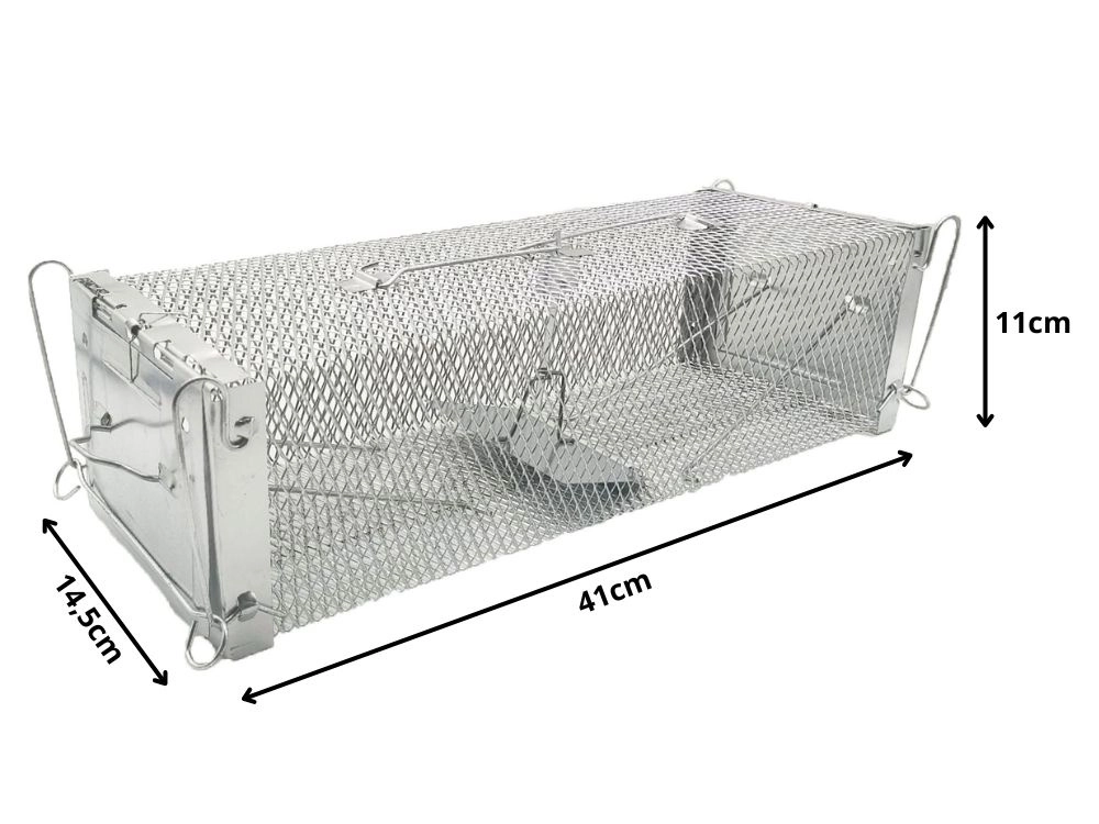 Duża metalowa humanitarna klatka na szczury i inne gryzonie oferuje bezpieczny sposób schwytania szkodników bez konieczności używania trucizn i chemikaliów.