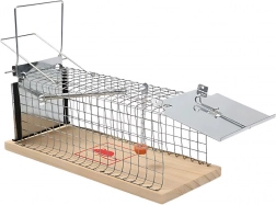 Ta metalowa pułapka jest zaprojektowana do bezpiecznego i skutecznego łapania małych szkodników bez konieczności stosowania trucizn. Jest wykonana z stalowego drutu i drewnianej podstawy, co zapewnia trwałość i bezpieczną obsługę.