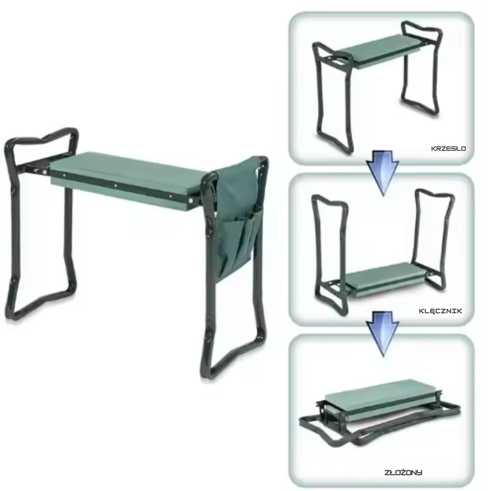 Dzięki funkcji 3w1 możesz używać klęcznika jako stołek do sadzenia, klęcznik do pielenia lub siedzenie do odpoczynku. Miękka piankowa poduszka z EVA jest idealna dla komfortu twoich kolan. Składana konstrukcja umożliwia łatwy transport i przechowywanie.