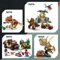 Zestaw z 582 elementami zaprojektowano do kreatywnego budowania i zabawy. Interaktywne elementy, takie jak przewracające się drzewo, mocowany dron i stawy przegubowe dinozaurów, wspierają opowiadanie własnych historii. Dzięki aplikacji LEGO Builder dzieci mogą łatwo przybliżać modele, obracać je i śledzić postępy.
