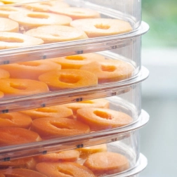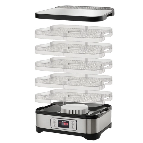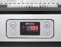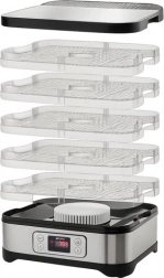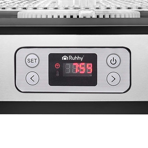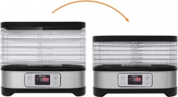 - Wyświetlacz LCD i wentylator z termocyrkulacją dla równomiernego suszenia na wszystkich poziomach.