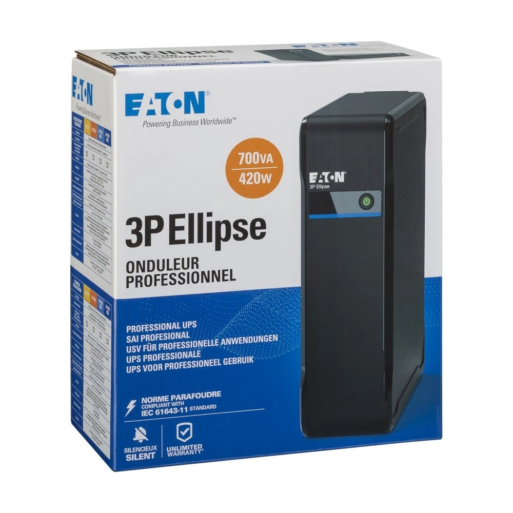 Zasilacz awaryjny UPS Eaton Ellipse dostarcza o 12% więcej energii niż jego poprzednik (Ellipse ECO), oferując czas podtrzymania 15–20 minut przy typowym użytkowaniu, co pozwala płynnie poradzić sobie z przerwami w dostawie prądu. Dzięki wbudowanej ochronie przeciwprzepięciowej zgodnej z normą IEC 61643-11 możesz skutecznie chronić swoje cenne urządzenia. Oprócz klasycznych złączy FR możesz podłączać urządzenia także przez porty USB-A i USB-C.