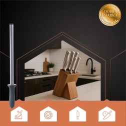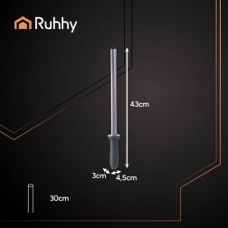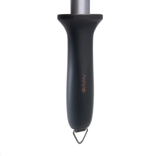 Diamentowa ostrzałka RUHHY to niezastąpiony pomocnik do regularnego ostrzenia noży, który utrzyma Twoje narzędzia w doskonałej kondycji. Ergonomiczny uchwyt i stalowy pręt zapewniają wygodne i trwałe użytkowanie, co czyni ją idealną zarówno do profesjonalnej, jak i domowej kuchni.