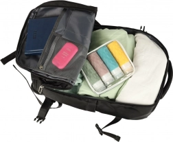 Idealny na dłuższe i krótsze spacery, ten turystyczny plecak jest zaprojektowany do użytku w różnych środkach transportu. Elastyczna taśma ułatwia przenoszenie go razem z bagażem.