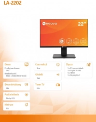 Ciesz się wysoką jakością obrazu na 22-calowym monitorze z wieloma opcjami podłączenia. Ten monitor to świetne rozwiązanie dla osób poszukujących niezawodności i elastyczności.