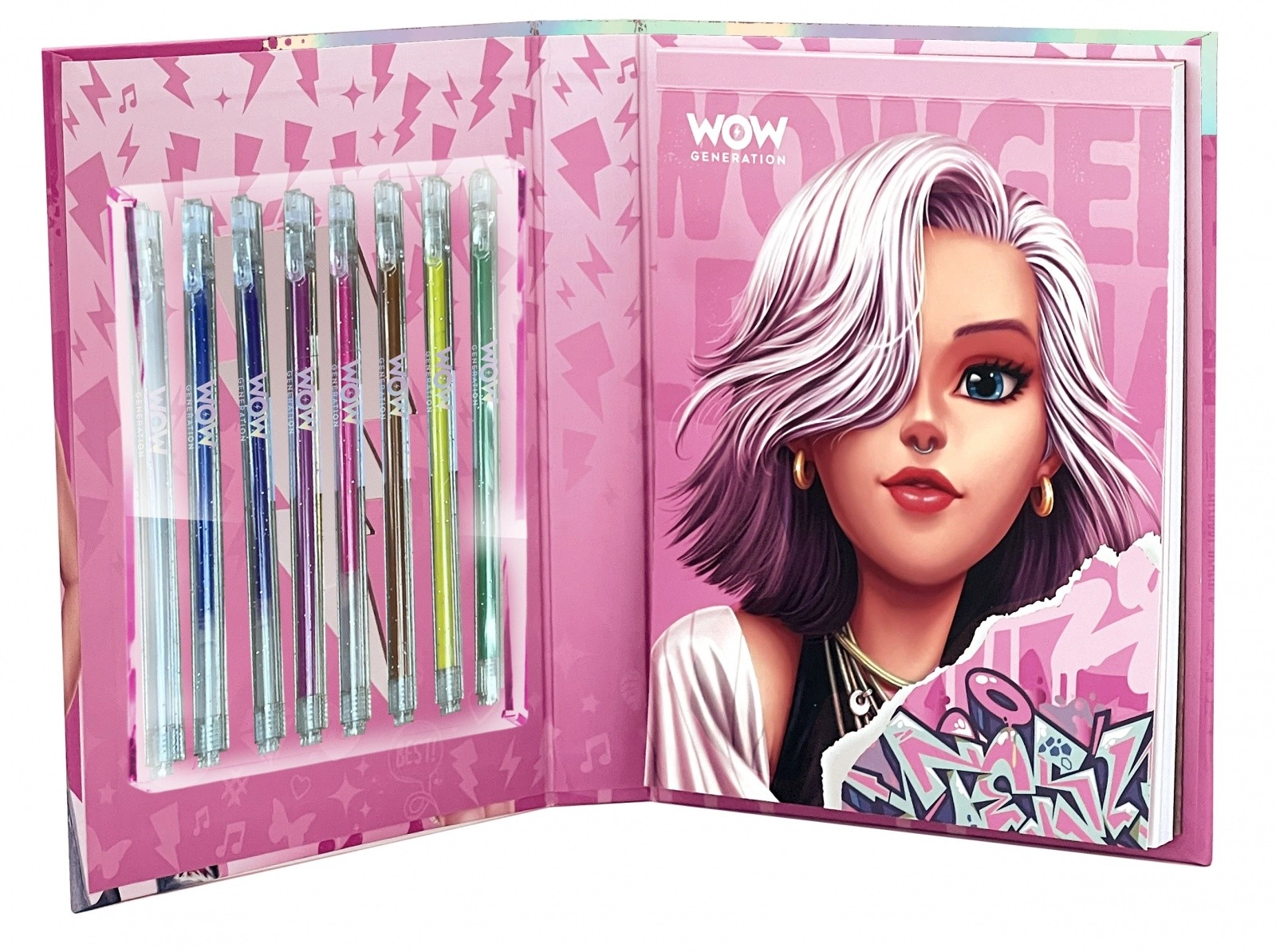 Zacznij tworzyć z tym eleganckim zestawem zawierającym notes i 8 kolorowych długopisów, które pobudzą Twoją kreatywność.