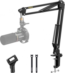 Uchwyt na mikrofon Maono wykonany jest z wysokiej jakości stali, co umożliwia bezpieczne mocowanie mikrofonów o wadze do 1 kg. Dwa ramiona o długości 33 cm pozwalają na łatwą i precyzyjną regulację pozycji.