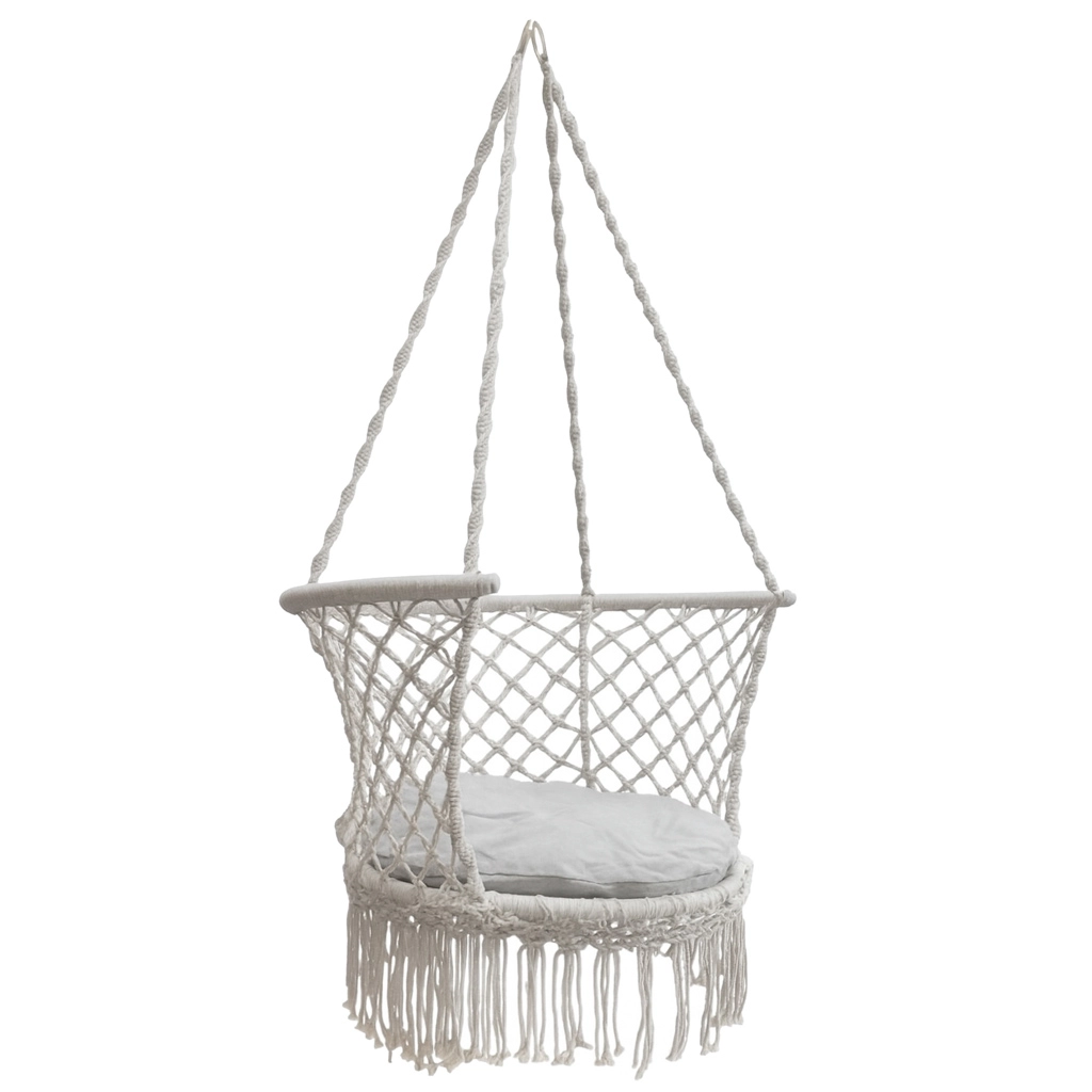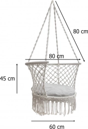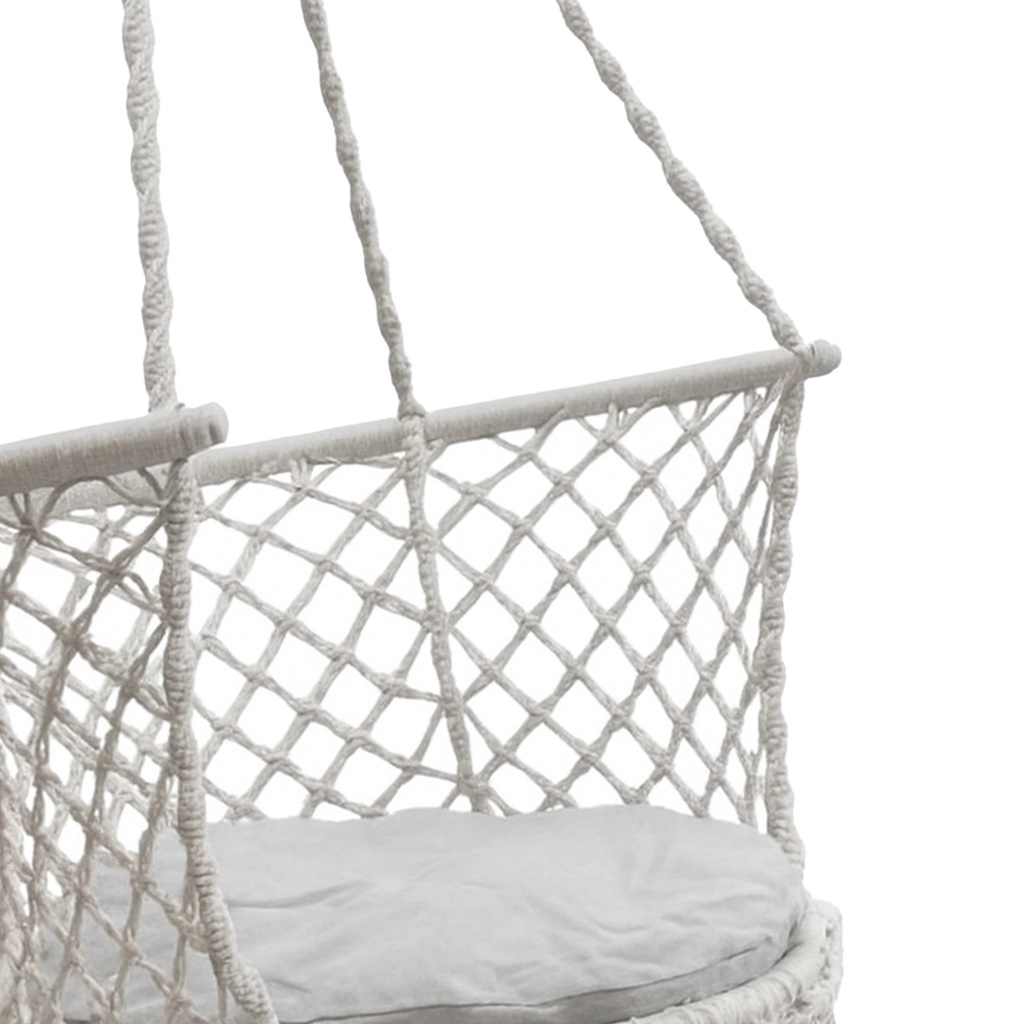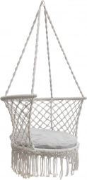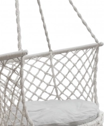 Szare zawieszone siedzisko z konstrukcją w kształcie gniazda zamieni twój ogrodowy kącik w spokojne miejsce do odpoczynku. Dzięki poduszce, która jest częścią zestawu, możesz wygodnie oprzeć plecy o metalowy krąg. Huśtawka jest stabilna i pozwala siedzieć zarówno prosto, jak i wygodnie w pozycji tureckiej.