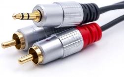 Kabel Qoltec 2x RCA - 3.5mm Jack umożliwia przenoszenie sygnału audio między smartfonem, odtwarzaczem MP3, komputerem a innymi urządzeniami audio z wtykiem RCA. Pozłacane złącza zapewniają doskonałą jakość dźwięku i ochronę przed korozją.