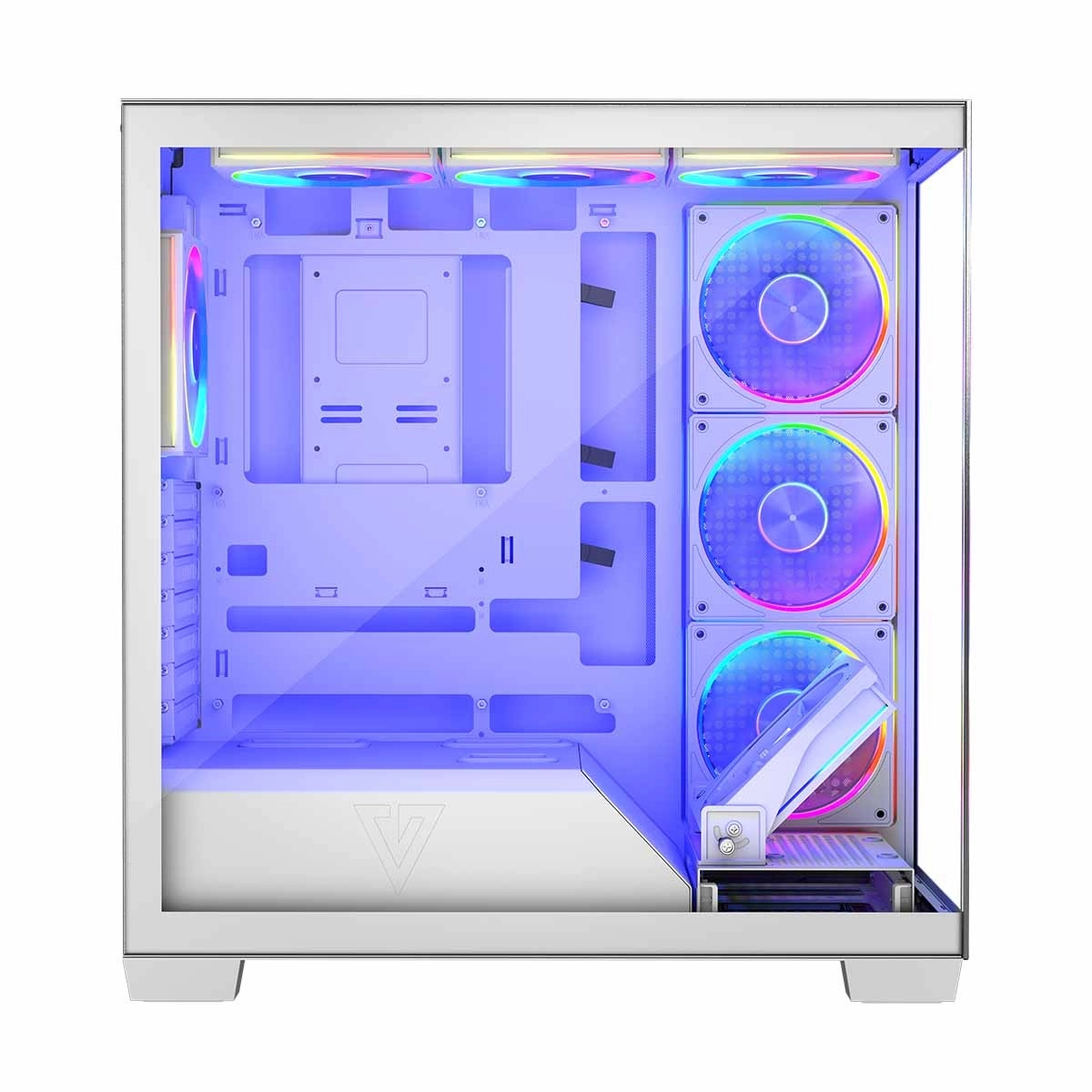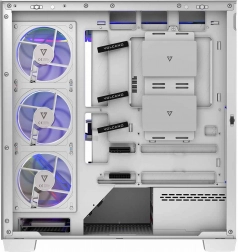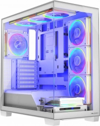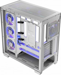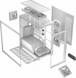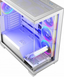 Głównym elementem jest efektywny system chłodzenia, który zapewniają trzy wentylatory ARGB z boku obudowy, kolejne trzy na górze i dwa z tyłu. Dostępna jest także specjalna rama na wentylator do bezpośredniego chłodzenia karty graficznej.