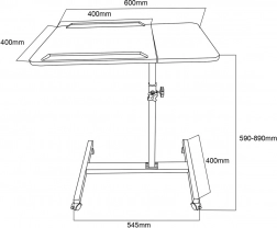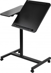 Stabilność, wytrzymałość i mobilność – Stolik jest wyposażony w cztery solidne kółka ułatwiające przemieszczanie między pokojami lub stanowiskami pracy. Dwa kółka mają hamulec, co pozwala bezpiecznie zablokować stolik w miejscu. To praktyczne rozwiązanie zapewnia stabilność nawet przy dużym nachyleniu blatu.