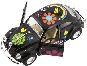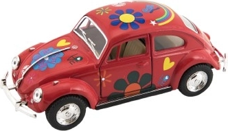 Przenieś się do złotej ery motoryzacji z dopracowanym modelem KINSMART VOLKSWAGEN Beetle. Ten metalowy model o długości 13 cm zachwyca jakością wykonania, barwnymi kwiatowymi motywami i realistycznymi detalami, które ucieszą dzieci i dorosłych kolekcjonerów.